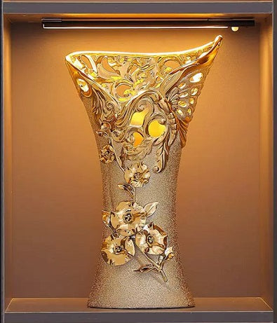 Gold 24 Karate Plated Porcelain Handicrafted Vase Plant Pot Table Decoration Flower Arrangement