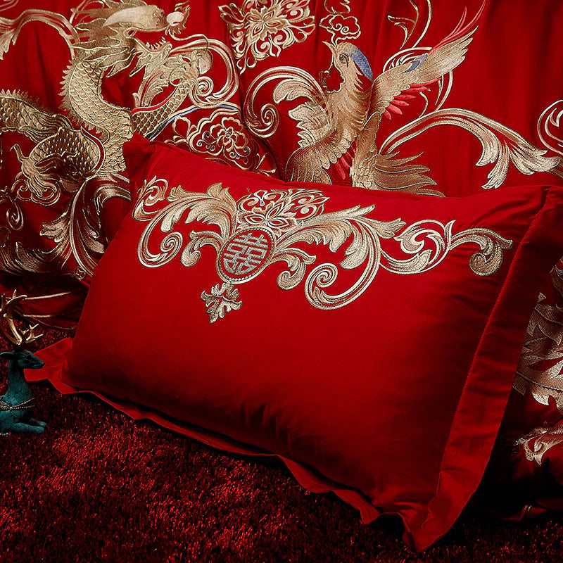 Gold Phoenix Luxury Royal Egyptian Cotton Red Duvet Cover Set