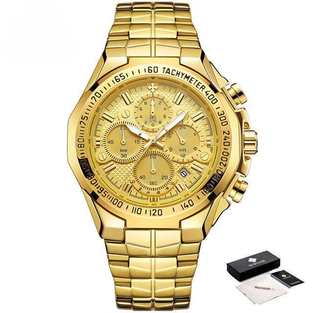Luxury Timepic Multi Function Tachometer Chronograph Quartz 30 Meter Water Resistant Watch For Man
